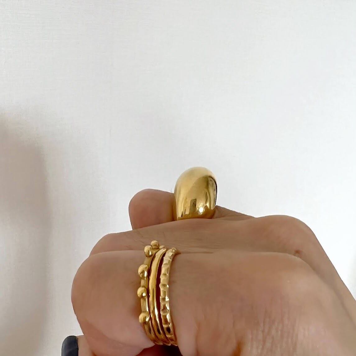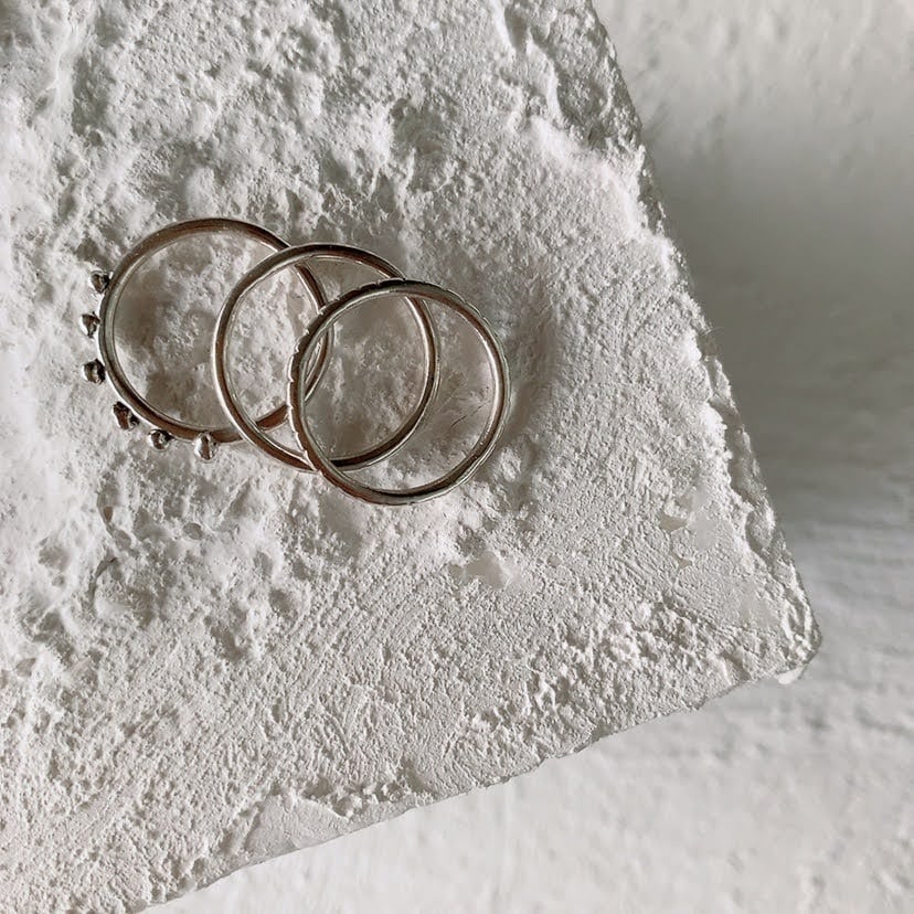 とタイプの違う3つのリングを重ねて楽しんでいただける遊び心のあるリングは